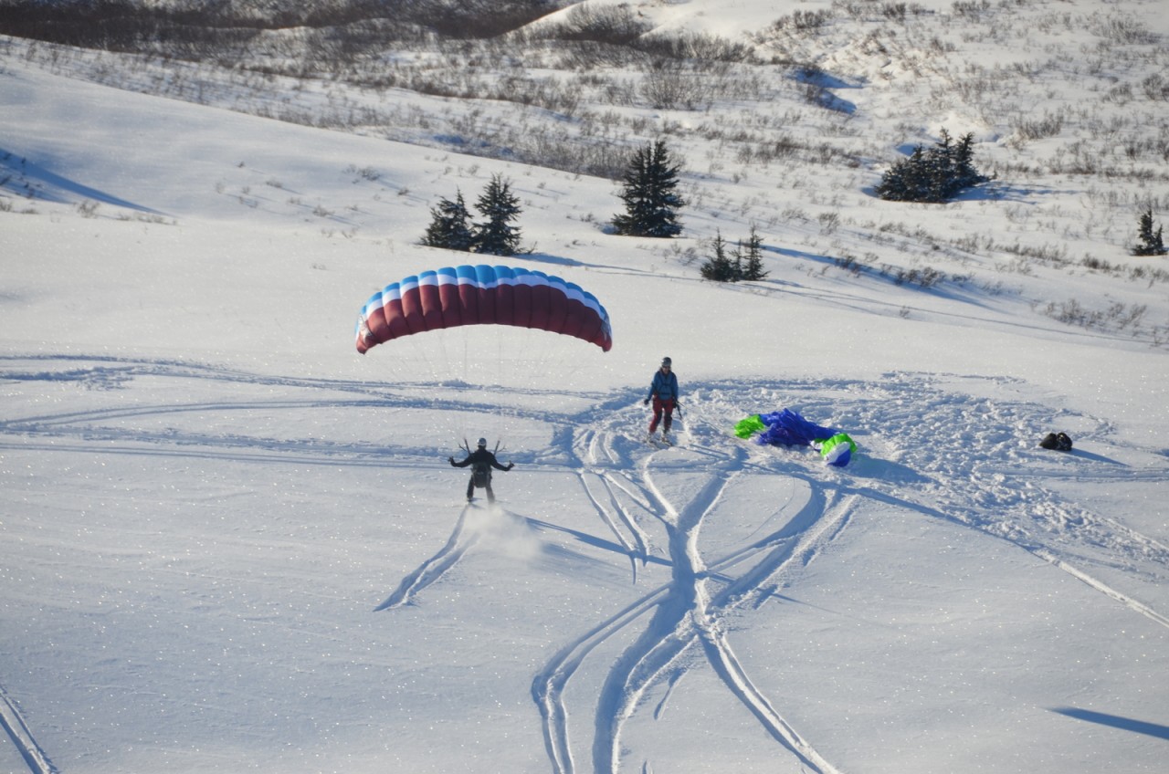 February 8, 2014 A small group of pilots enjoyed a post-snow storm speed flying session on Manitoba Peak near Summit Lake on the Kenai. By Matt Bonney Location: